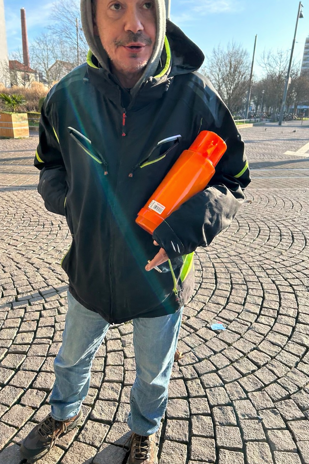An einigen mir bekannten Schlafplätzen war zwar niemand anzutreffen, aber diejenigen, die da waren, haben sich riesig gefreut. Das Essen und der Tee waren dank Thermoboxen und den von der Firma ROTPUNKT gespendeten Thermoskannen zum Glück noch heiß. Ich war froh, so viel gekocht zu haben, denn der Hunger war groß und der heiße Tee tat bei den Temperaturen sichtlich gut. Die Thermoskannen mit dem Tee habe ich bei ihnen gelassen. So haben sie auch später noch die Möglichkeit, einen heißen Tee zu trinken.